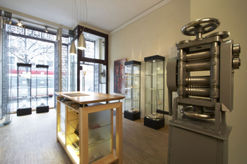 Und da das Atelier gleich offen hinter dem Verkaufsraum liegt, kann man bei der Herstellung der Pretiosen auch schon mal über die Schulter schauen.