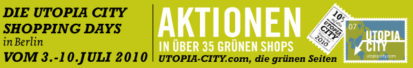 Pünktlich zur Modewoche in Berlin veranstaltet Utopia vom 3. bis 10. Juli die City Shopping Days in der Hauptstadt. Rund 40 ausgewählte Läden und Gastronomen, die sich den strategischen Konsumenten verschrieben haben, bieten in dieser Zeit besondere Aktionen, Rabatte, Geschenke oder Testaktionen. Hier findet sich die Liste der teilnehmenden Locations, die dort auch bewertet werden können.