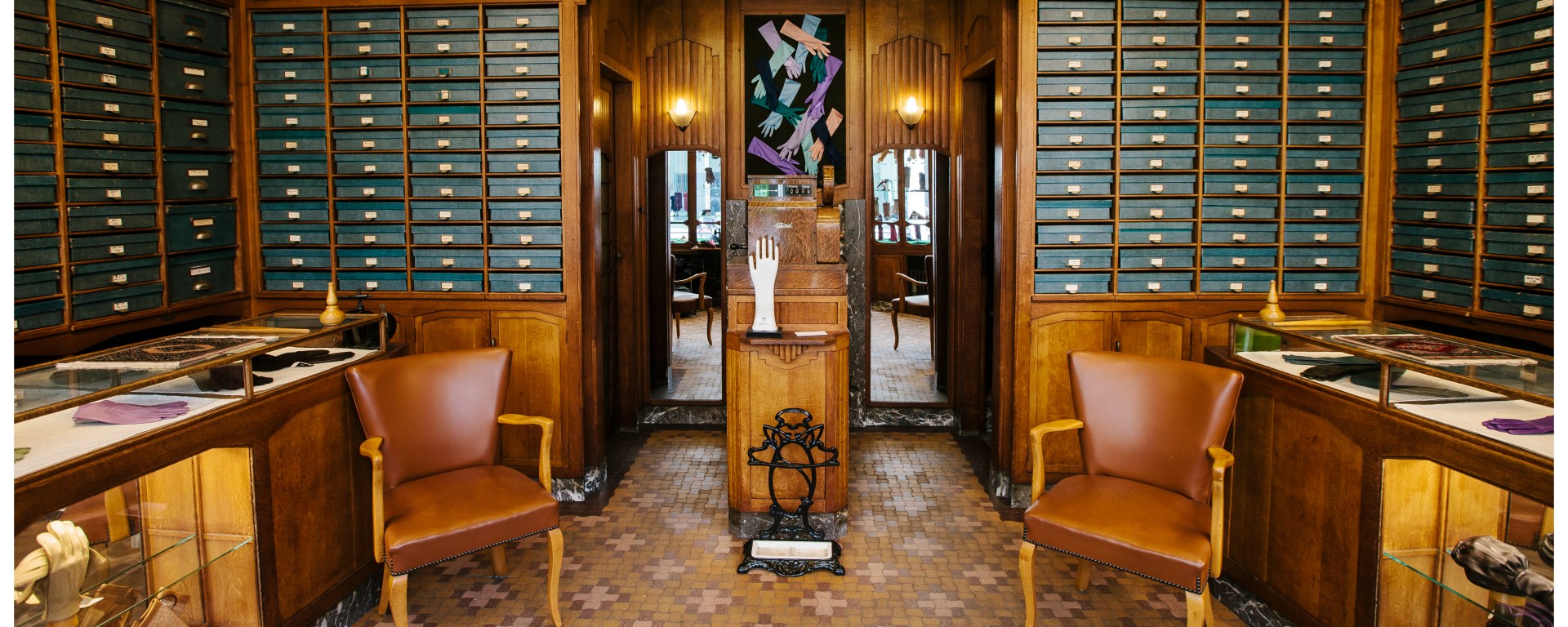 In Sichtweite internationaler Flagshipstores ist die Manufaktur für feine Handschuhe seit 1884 im Familienbesitz. Nicht nur das Handwerk hat ein Jahrhundert überdauert, auch das Interieur ist im originalen Zustand.