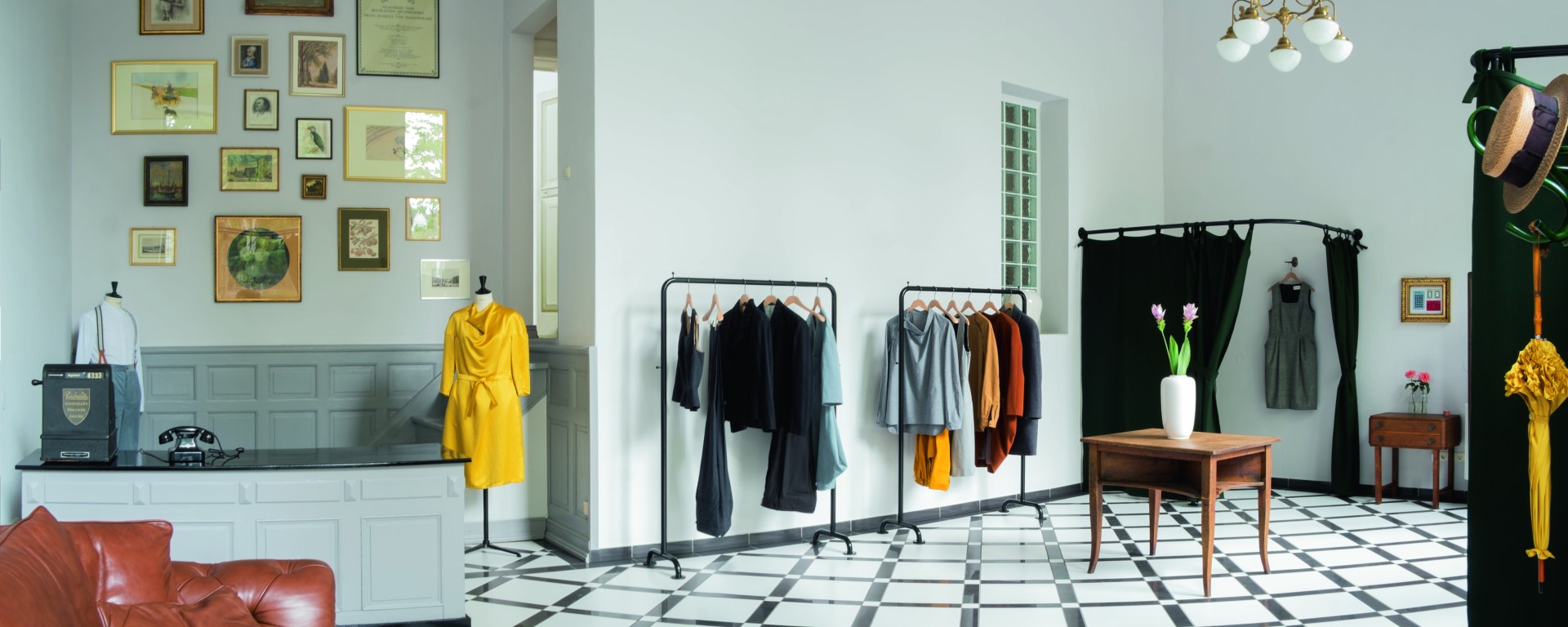 Her atelier for clothing is to Galatea Ziss, young designer and master tailor, also a statement. She relies on quality in made to measure and deceleration against the fashion hypes of our times that marked her previous years. Good products with a traditional history, worth preserving, perhaps even hereditary. An inspired room for clothing in the best sense.