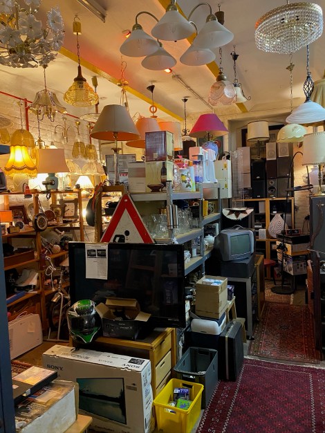 Sie haben in Köln-Mülheim, nah beim Rhein auf seiner „schäl sick“, einen in seiner Vielfalt und gesellschaftlichen Relevanz bemerkenswerten Ort geschaffen, der nur auf den ersten Blick ziemlich chaotisch wirkt: Einen Secondhandladen, dessen Sortiment aus Wohnungsauflösungen stammt (die wiederum einen planbaren Unterhalt der Initiatoren-Gruppe sichern). Es gibt hier wirklich alles, was in Wohnungen so übrig bleibt: Haushaltsgegenstände und Dekoration aller Art, Möbel, Nützliches und Kuriositäten, rare Vintage-Sachen und sogar Museumsstücke: