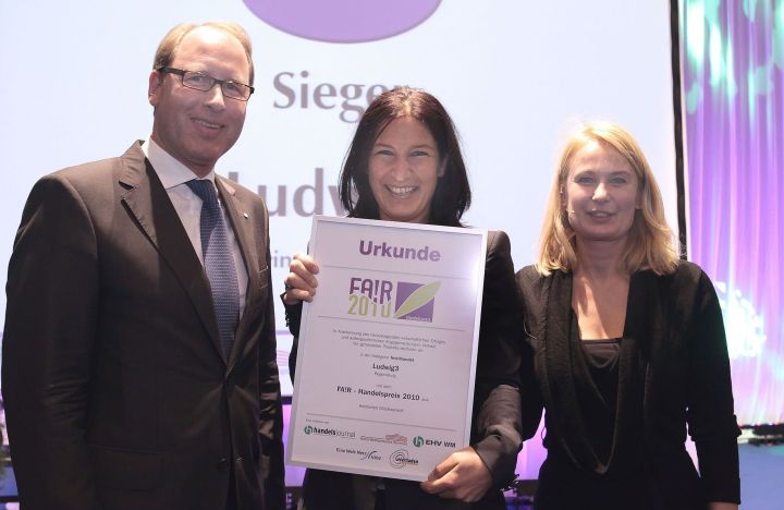 She’s gotta have it: Michaela Gielgen (strahlend in der Mitte) ist Gewinnerin des Fair-Handelspreises 2010 für ihren Concept Store Ludwig3 in Regensburg. Der Preis wurde gestern abend im Rahmen der Dortmunder Messe Fair 2010 erstmalig verliehen, es gab jeweils einen Gewinner in der Kategorie Weltläden, Lebensmittel und Textilhandel. Ludwig3 überzeugte die kritische Jury durch sein einzigartiges Konzept und konsequentem Sortiment aus fair-organischer Mode, Kosmetik, Food und vielem mehr. Der Laden war, wie hier schon berichtet, 2008 entstanden, nachdem „Ludwig3 gewinnt Fair-Handelspreis 2010.“ weiterlesen